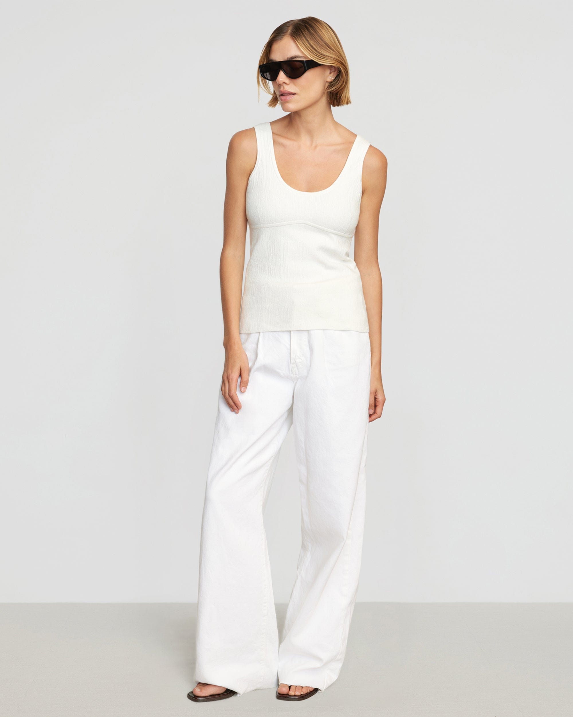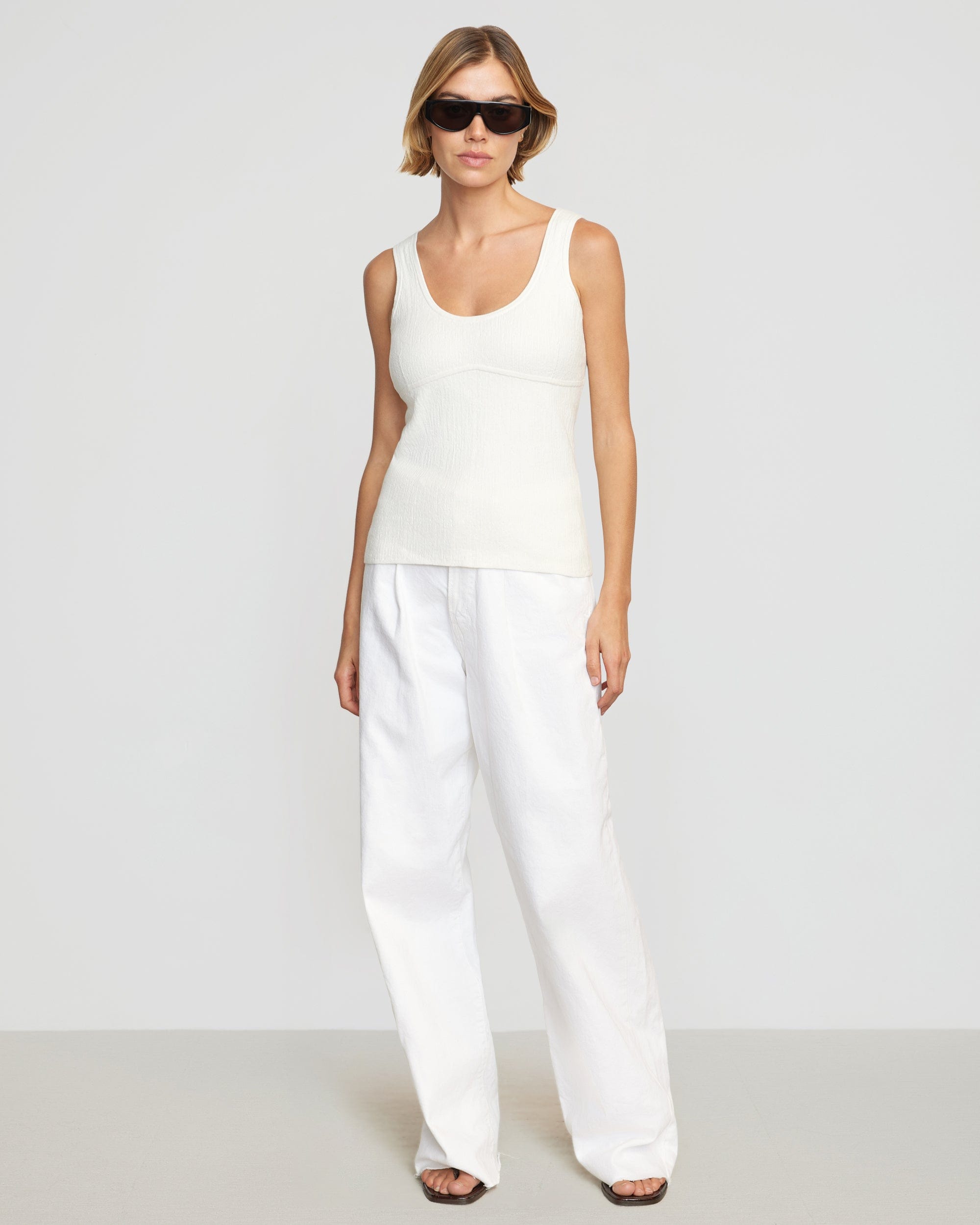 Modern, sleek, and versatile, Aida is the perfect transitional wardrobe piece.? With a flattering contour detail and of-the-moment scoop neckline, this light sweater tank elevates any look.