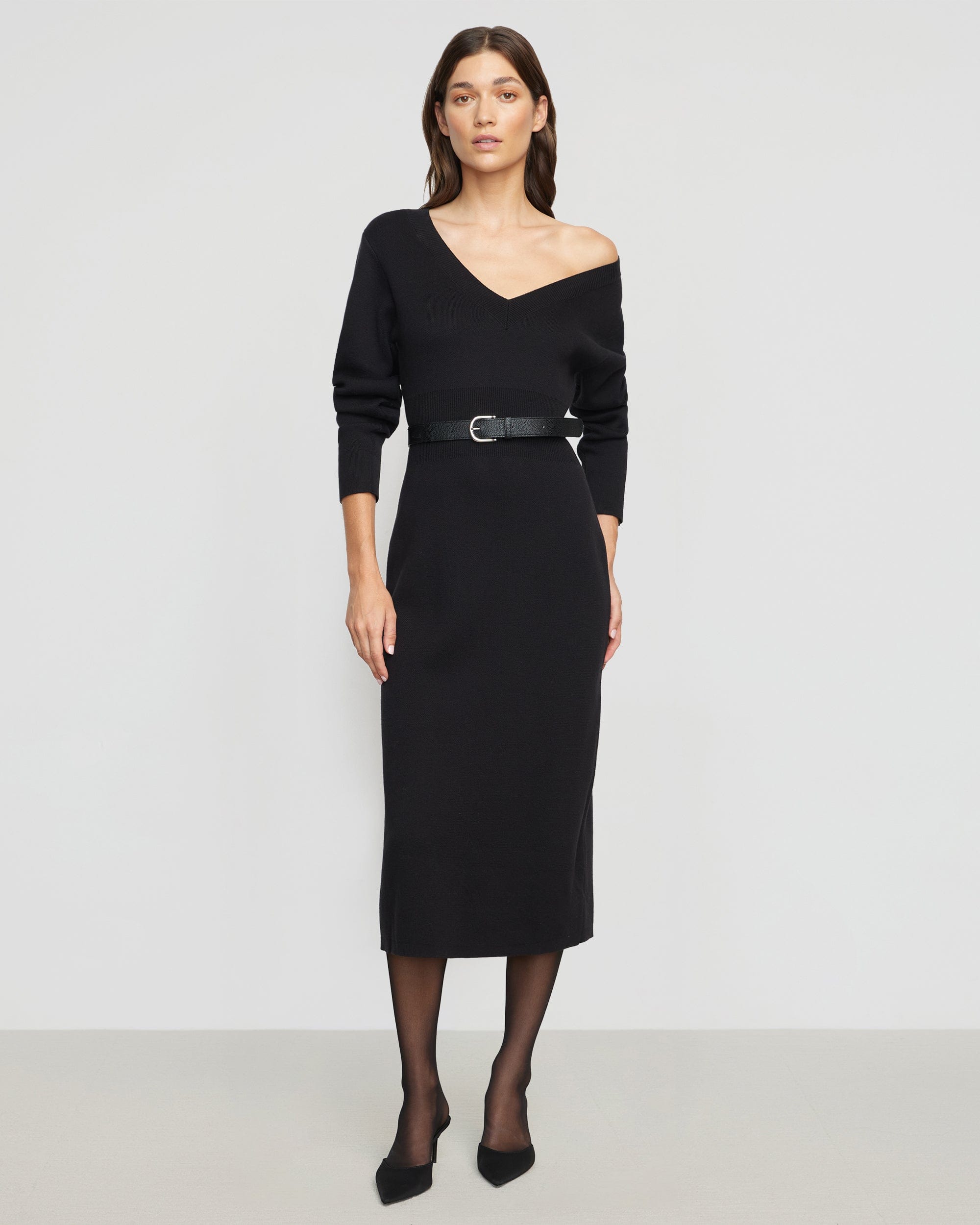 This chic, understated dress can be worn on or off the shoulders, making it a foundational fall piece. Style with boots or loafers for a foolproof seasonal look.