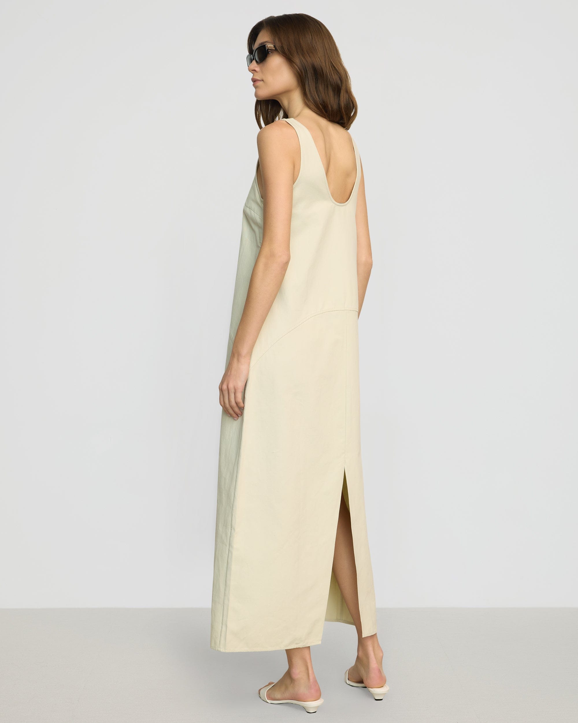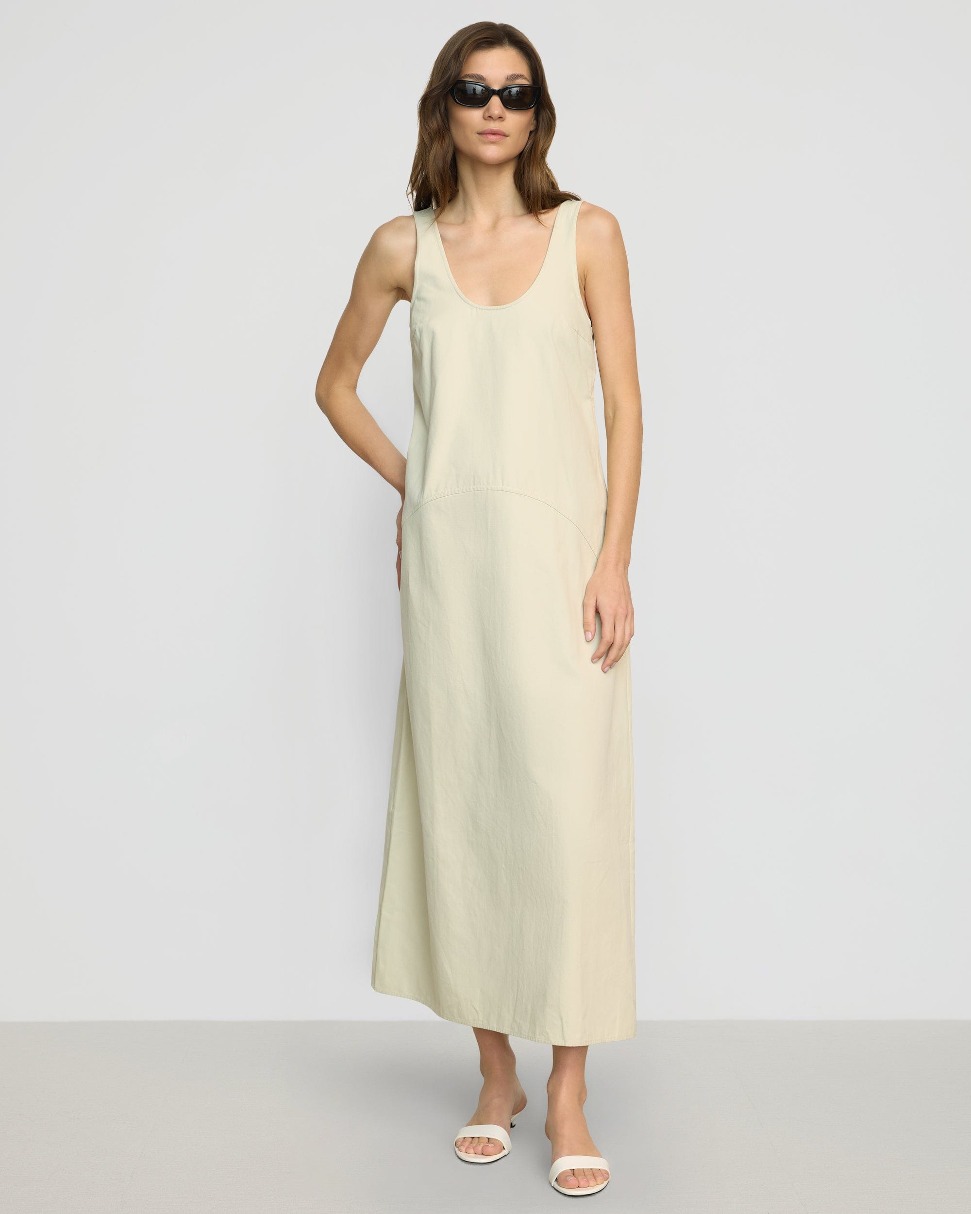 Effortlessly refined, Mavis is a structured cotton U-neck tank dress — blending modern curved seam details with a versatile silhouette, making it the perfect solution for chic transitional dressing.