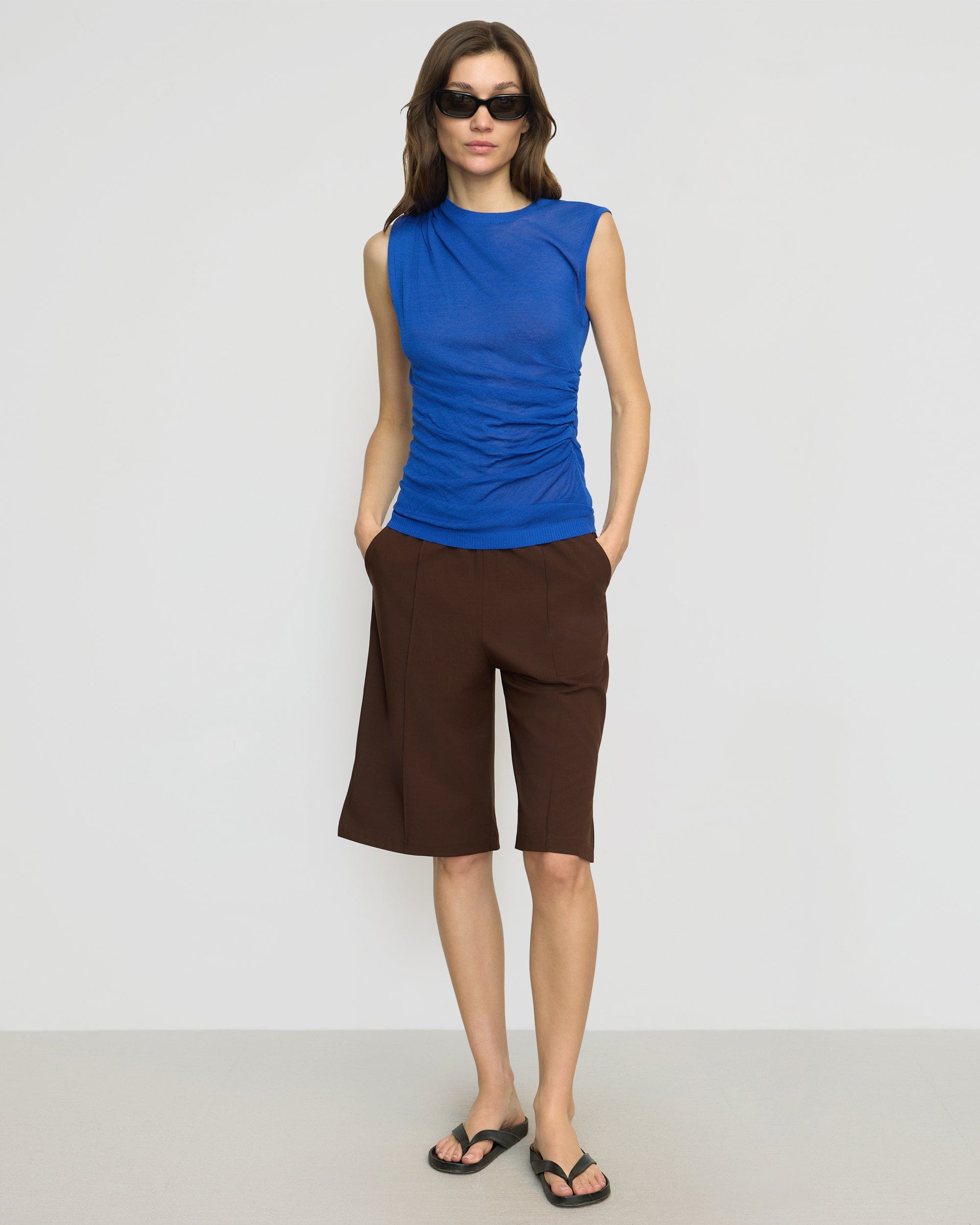 Add a chic update to your warm weather top rotation in this design-forward take on the everyday tank. ?Mikey is designed in a lightweight slinky semi-sheer fabric with ruched details and an asymmetric neckline.?