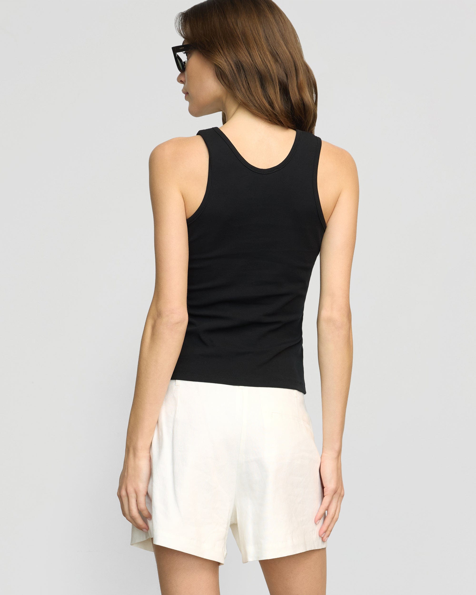Our updated take on the classic warm weather go-to. ?Prithi features a chic scoop neck and back and pairs perfectly with shorts or a maxi skirt for an effortless weekend outfit formula.?
