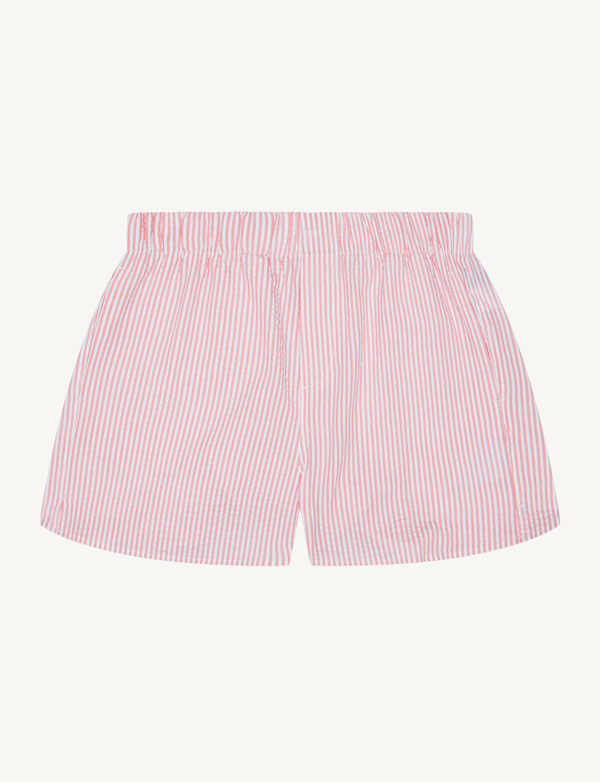 The Boxer: Seersucker, Pink Stripe in 100% Organic Cotton. Head straight to the beach with these pink striped boxers, pre-crinkled for packing perfection. Pair with the matching shirt for the ultimate beach look over a bikini, or take them into town by styling them with a light polo shirt and trainers.