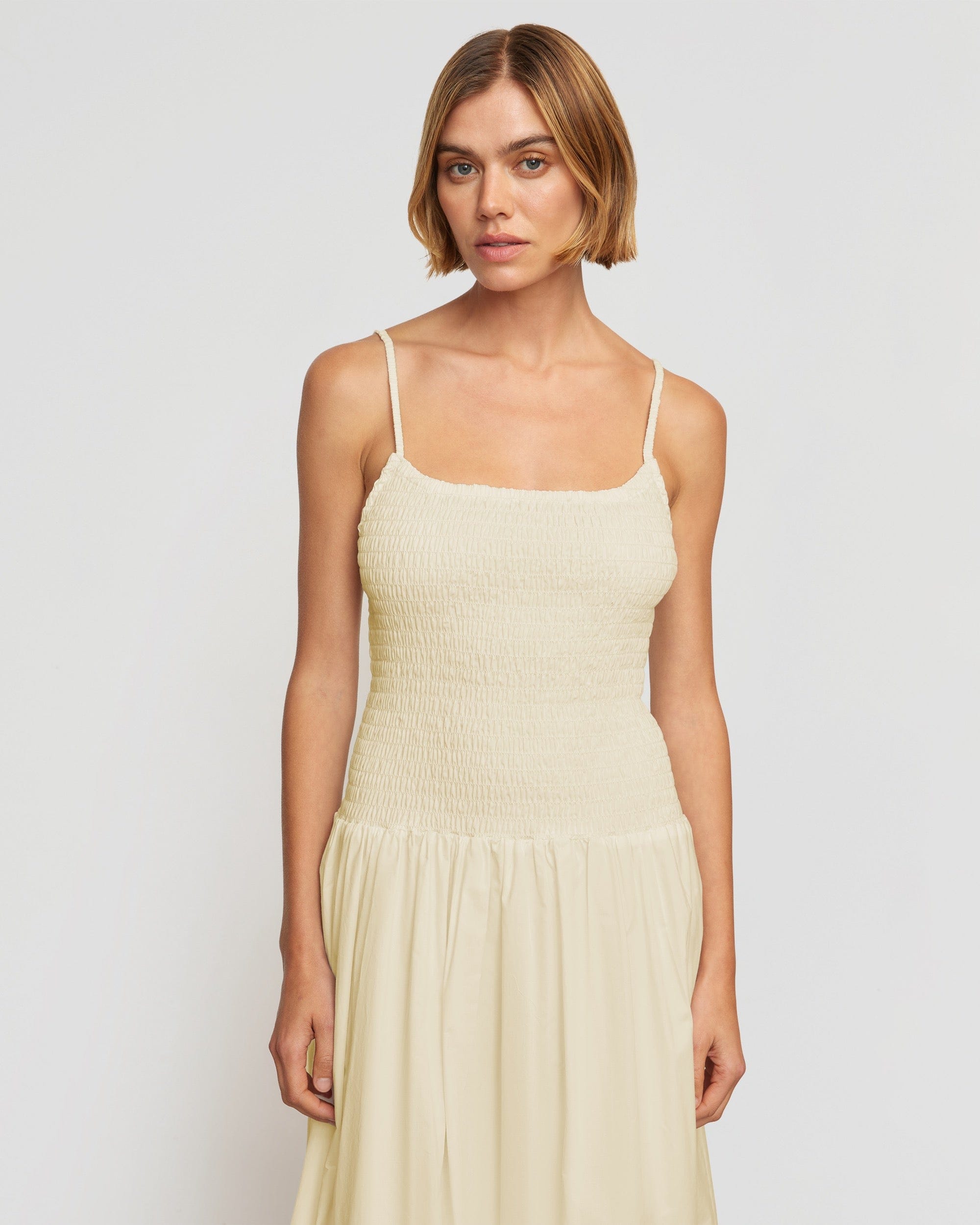 This midi-length dress is a spring-into-summer wardrobe staple in the making.  With elegant strap details and a flattering smocked top, Venus is an easy choice for any occasion.