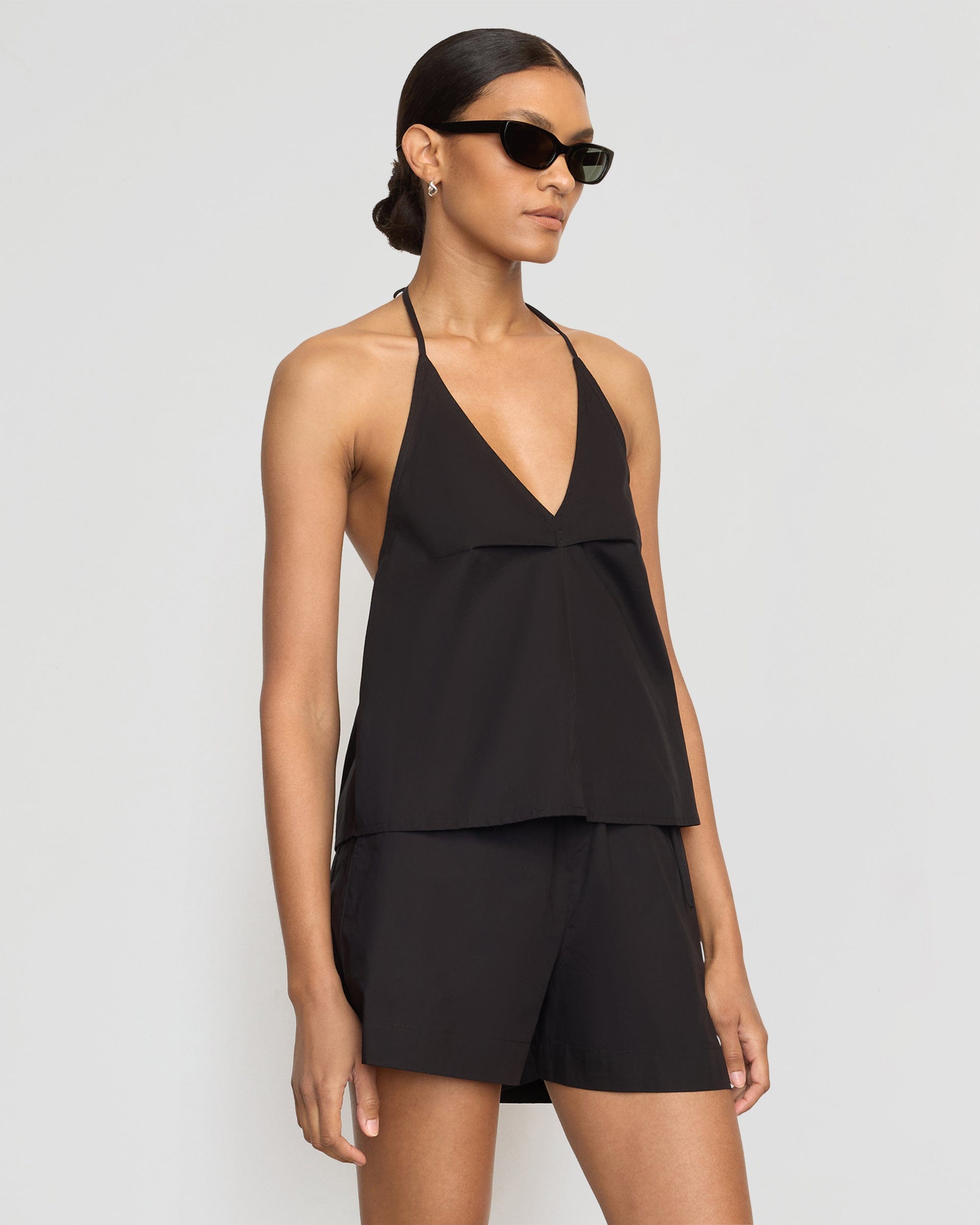 A breathable, lightweight halter top with a flattering low back and cinched detail. ?Pair with our Paula pant for an effortless and chic solution to warm weather dressing.