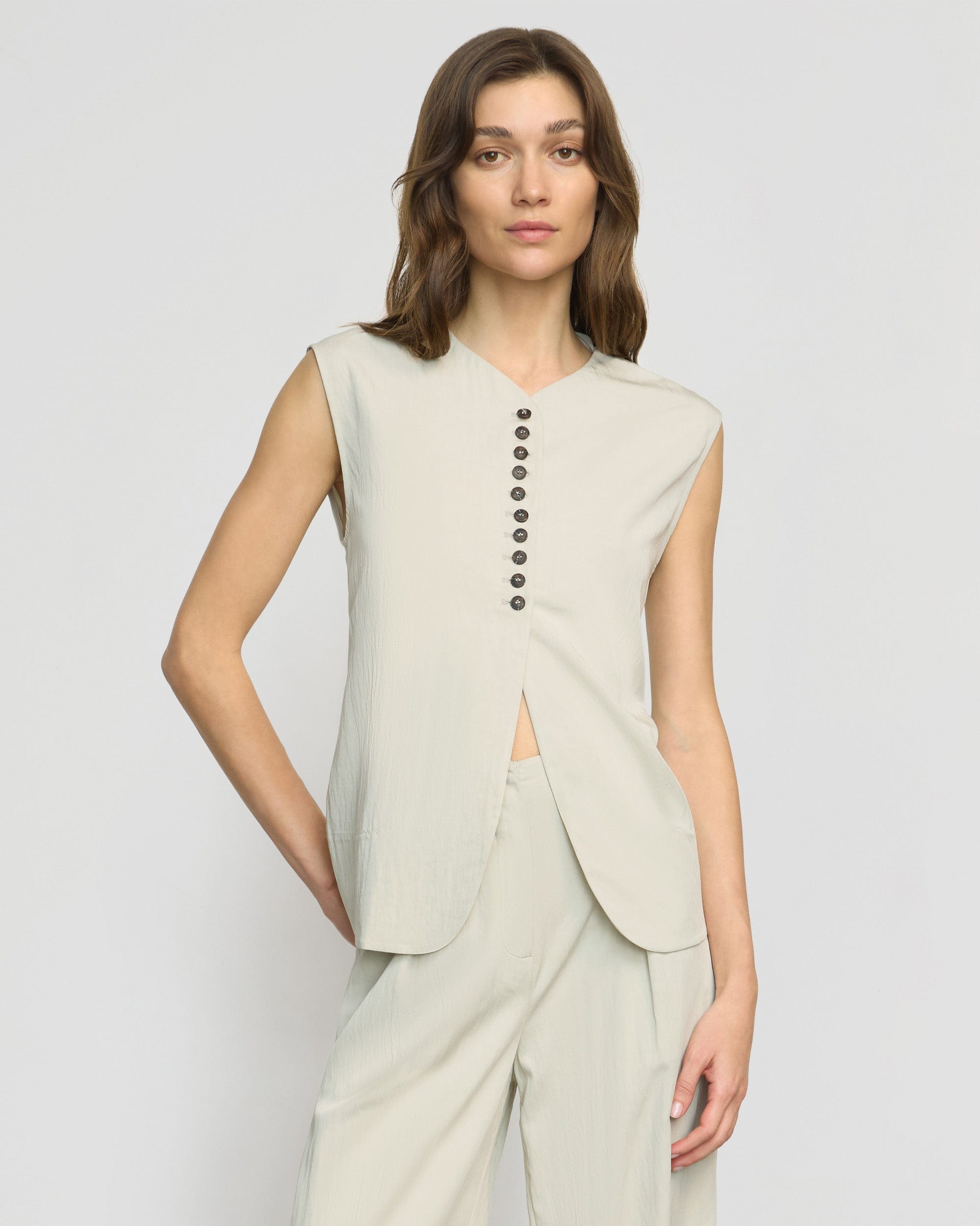 Zhou Tie-Back Button Vest